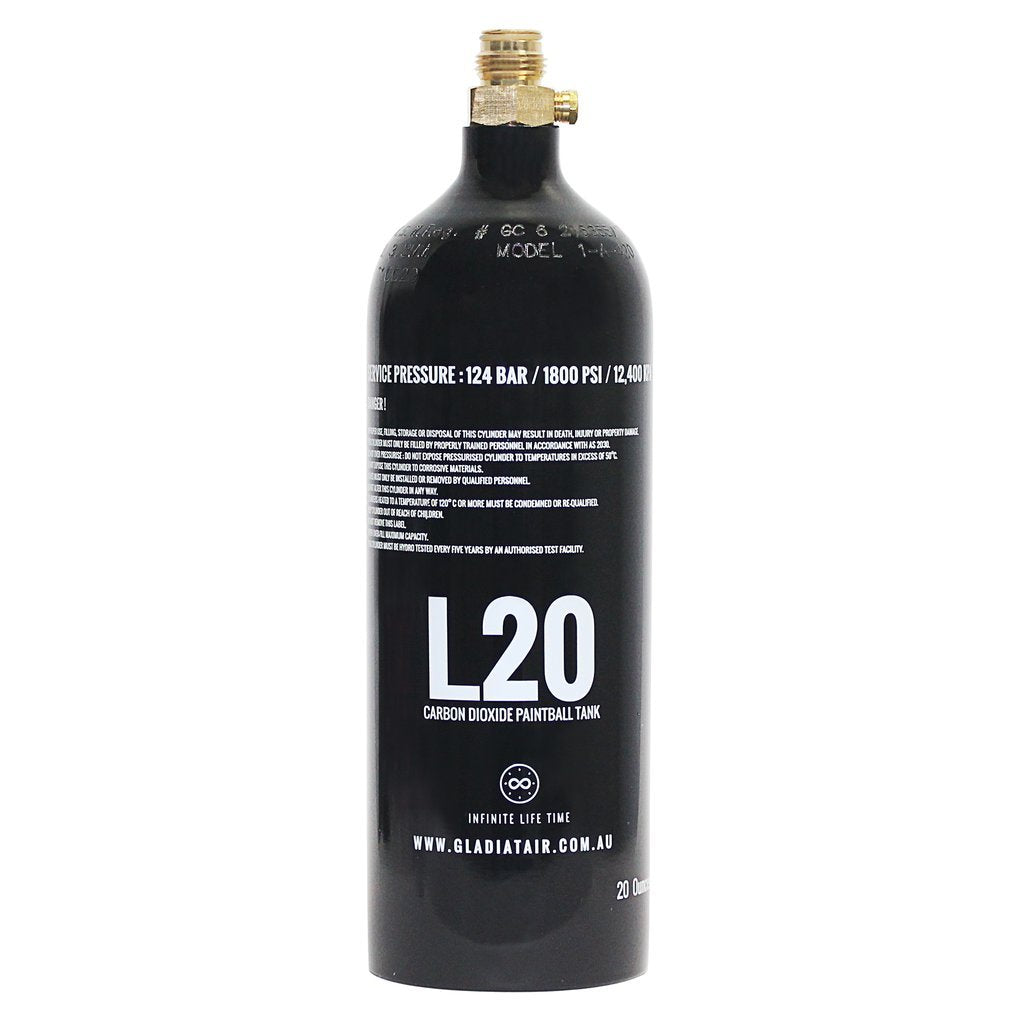 The L20 20oz is the perfect size paintball tank for players and field operators using CO2.