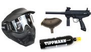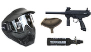 - CO2 package includes: 12oz CO2 tank (ships empty), VFORCE mask, 200 round hopper, 500 paintballs